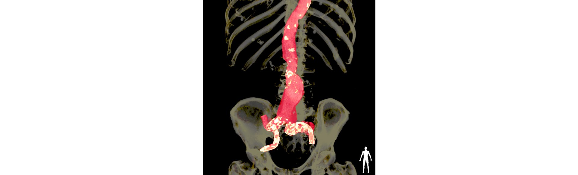 In addition to the maximum transverse diameter, the nature of the aneurysm also determines the urgency of the treatment. Hence, the aneurysm does not always have to be spindle-shaped – it can also be saccular-shaped or even resemble a “toxic” bulge (bubble), threatening to tear. Contrast-enhanced computed tomography angiograms (CTA) also provide information on whether or not the renal arteries or the superior mesenteric artery, which supplies the majority of the small intestine, is or are affected. Lastly, CT angiography shows which type of treatment, namely open surgery or implantation of a stent graft (see explanation below) is preferred in consideration of purely anatomical reasons.